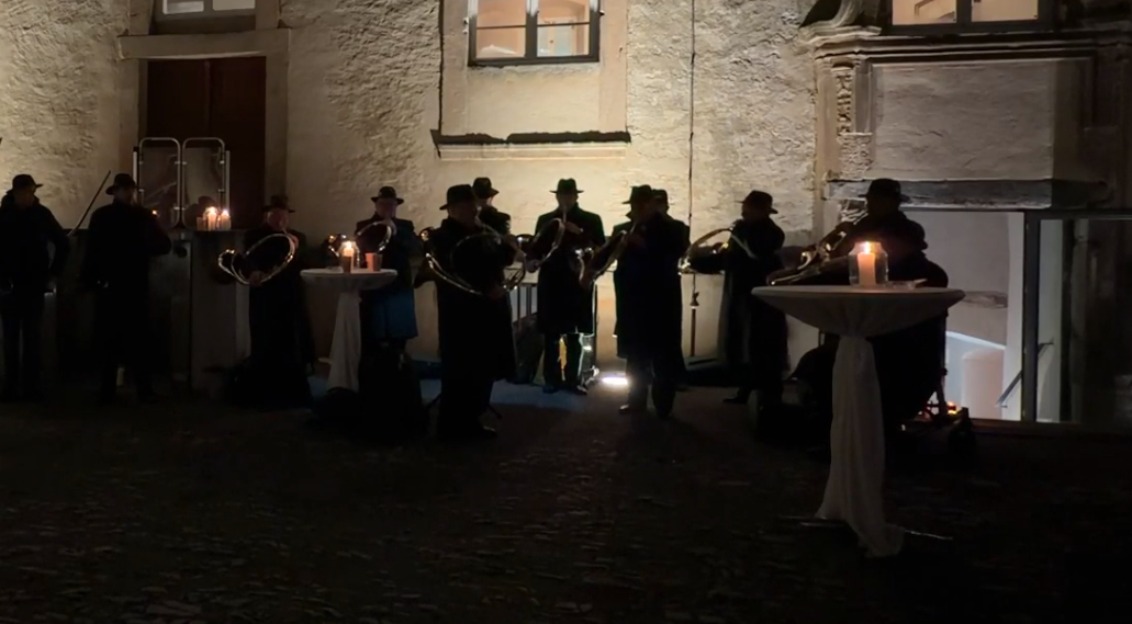 Wij treden regelmatig op in samenwerking met andere jachthoornkorpsen – een bijzonder facet van onze activiteiten dat zowel muzikaal als cultureel uniek is. Zo delen wij het podium met onder meer de Jachthoornblazers Rolduc (Kerkrade) en ensembles uit het Duitse Dalheim (Sauerland) en Trier (Rheinland-Pfalz). Terwijl wij de diepe, warme klanken van de parforcehoorn in Es laten horen, vullen de andere korpsen dit aan met de heldere, lichtere tonen van de pleshoorn in Bes. Die combinatie is zeldzaam en levert een bijzonder rijk en gelaagd klankbeeld op.
